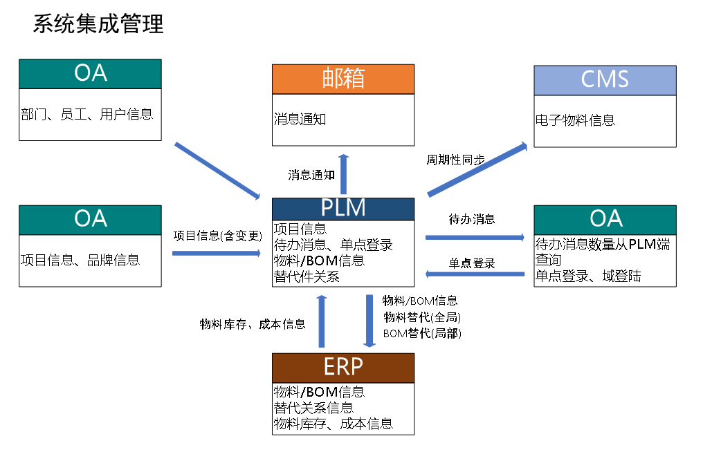 通过各系统集成,实现PLM、OA、ERP、CMS间数据的交互,打通整体业务数据流,实现数据精确传递。