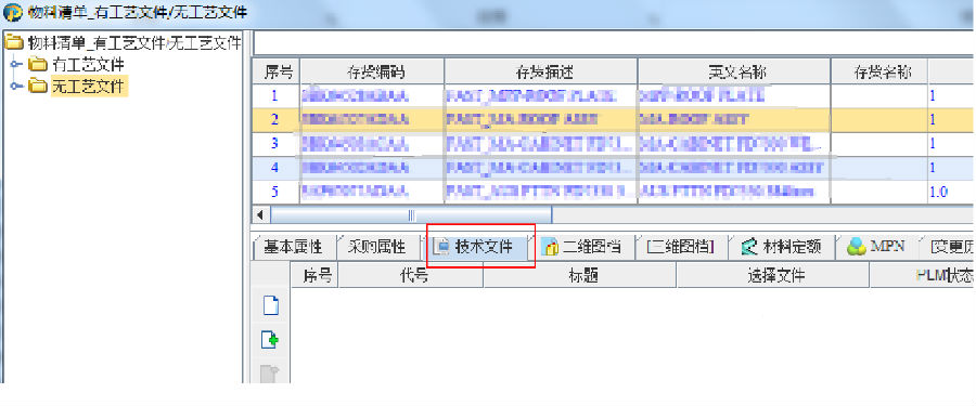 在BOM视图中进行有无工艺文件的视图展示,可根据此信息将无工艺文件的物料的工艺文件进行补充。