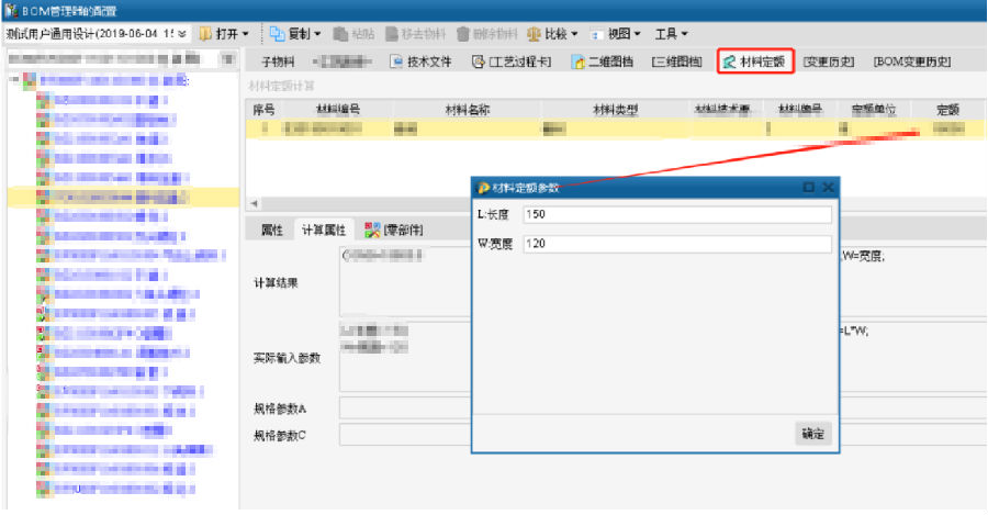 在BOM管理器中进行材料定额计算,调用完善、标准的材料库数据进行材料定额计算,提升材料定额计算的准确性,提升工艺的效率。