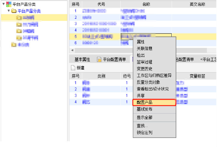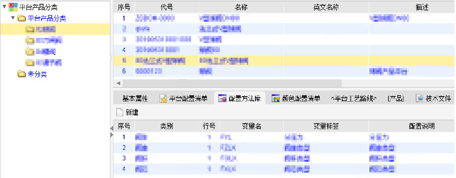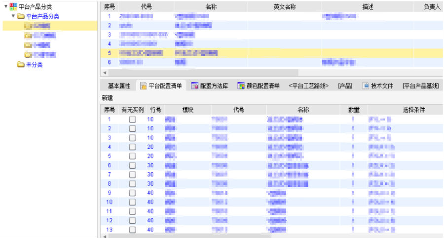 平台产品涉及的各种结构模块在平台配置清单中进行管理,定义某项对应的BOM结构,供订单产品设计时选择。