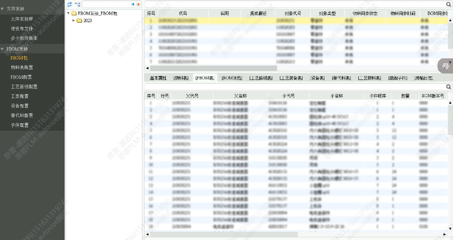 PLM把物料、BOM数据、工艺路线、工艺装备、设备、装配子件、工艺物料、替代关系等数据发布成PBOM包,并通过接口程序推送给ERP,保证数据的统一性。