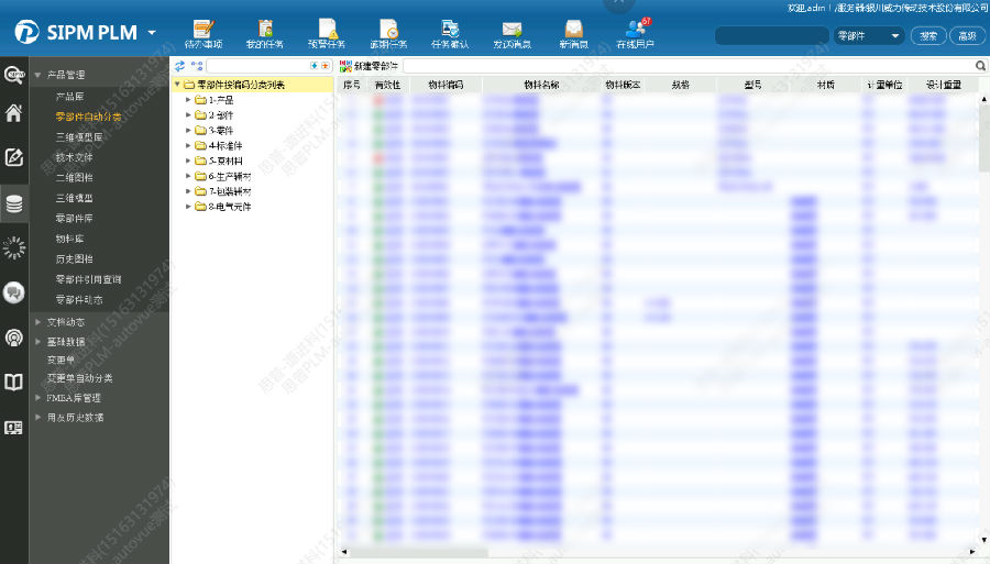 2.通过PLM的实施,实现管理物料、零部件、图纸、技术文件资料,分类管理。