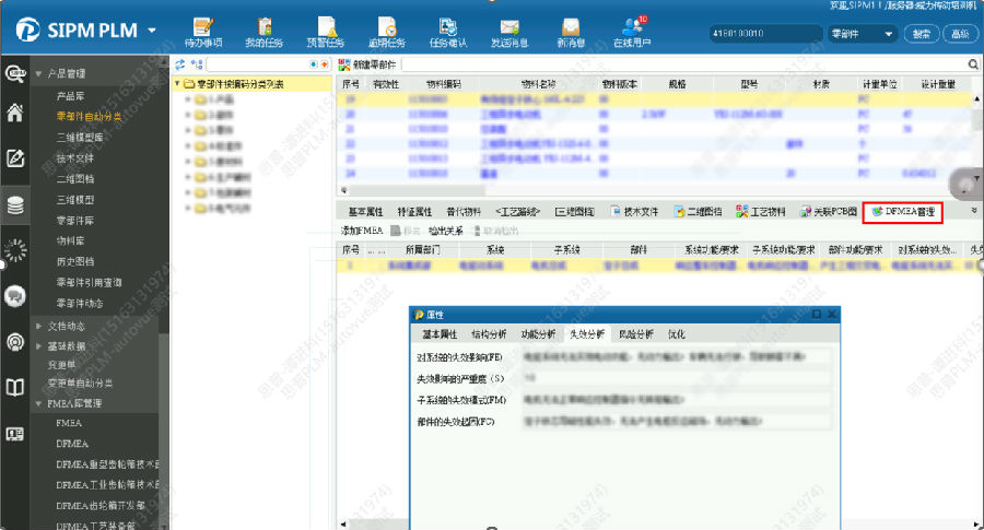 归集管理FMEA,并按产品类型实现FMEA自动分类管理,实现FMEA数据结构化管理;实现DFMEA与产品关联,PFMEA与工艺关联管理;