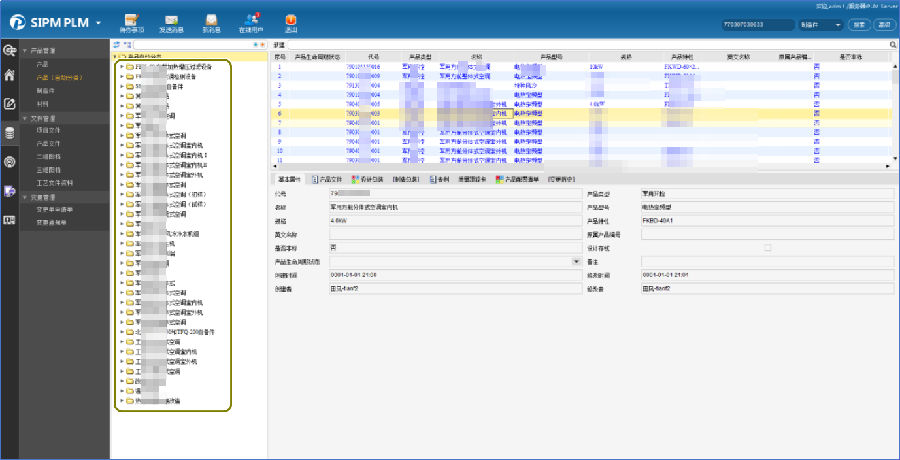 BOM通过产品进行管理,产品文件、质检卡、专利等与产品进行关联。