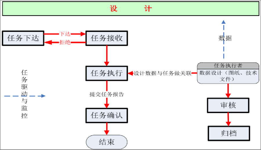 将产品设计和变更过程通过任务管理进行串联管理,通过任务时间对任务进度进行把控,通过任务输出关联文档模板达到对文件格式的把控,通过要求任务确认过程确保任务输出的完整性,输出过签审流程保证其正确性与有效性。