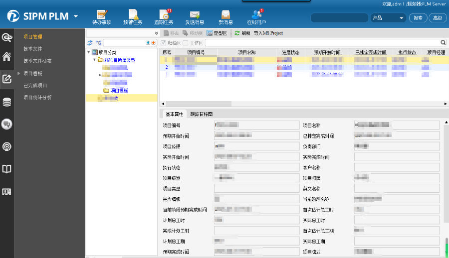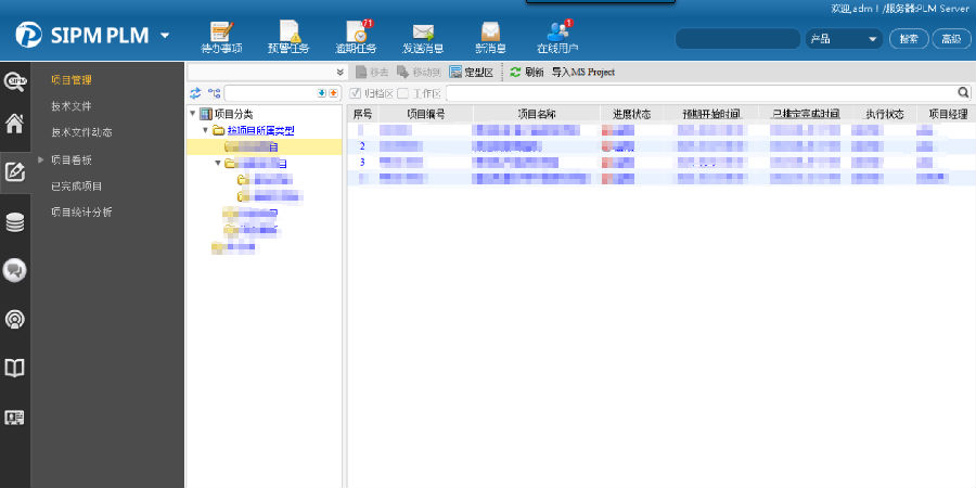 1、 通过PLM项目模块的实施,将线下项目的无序管理,提升为可控、可查、随时跟进的管理升级。通过按类型分类,对公司所有项目进行细分管理。