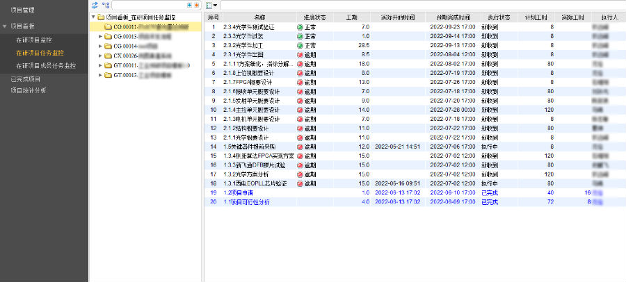 (在研项目监控看板)