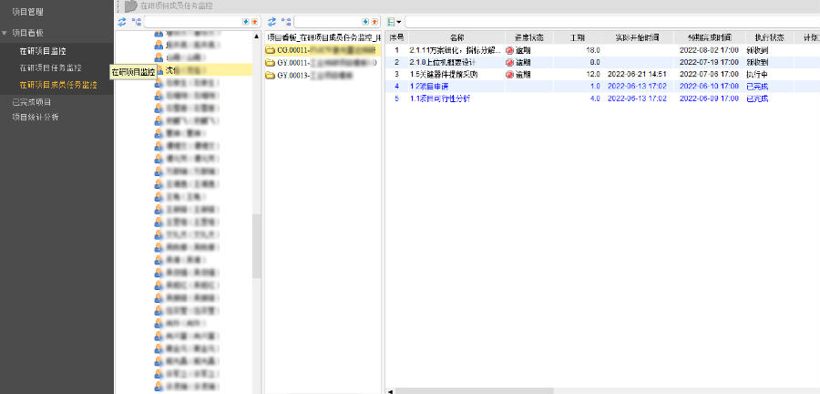 (在研项目成员任务监控看板)