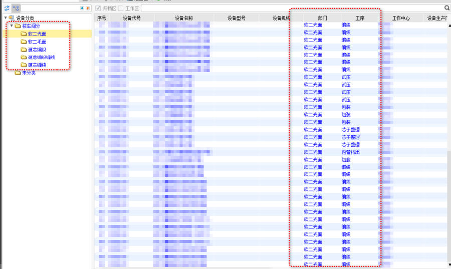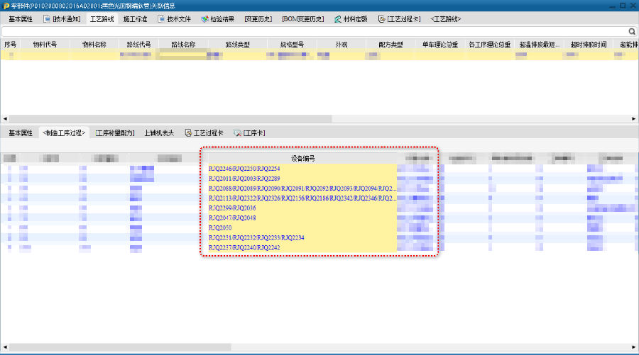 设备库:设备增加属性部门和工序,在设备库中将设备用到哪个车间,哪道工序,定义好。在做工艺路线时每道工序对应可使用的设备是固定的,一个工序只能选择对应的机台设备(通过设备上的部门和工序,对应选择的工序上定义的工序类型和工序名称,匹配到对应的设备),只能从匹配到的设备中选择。