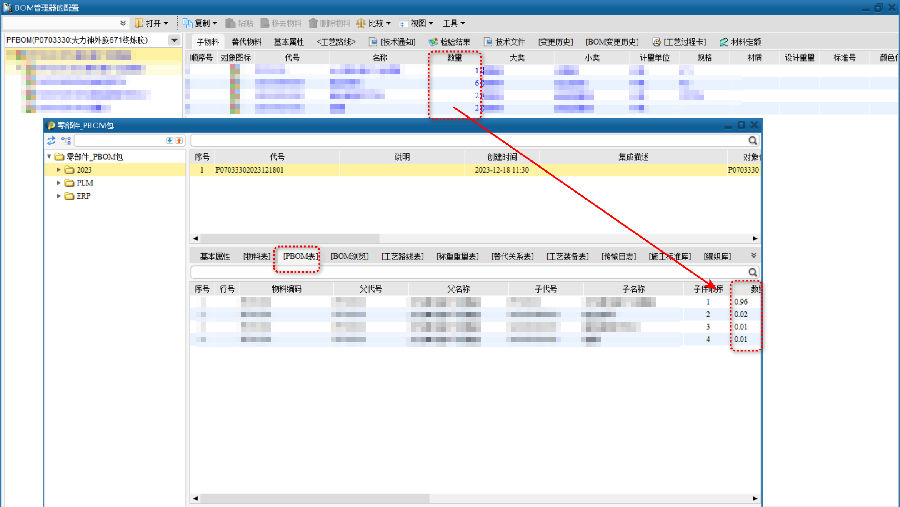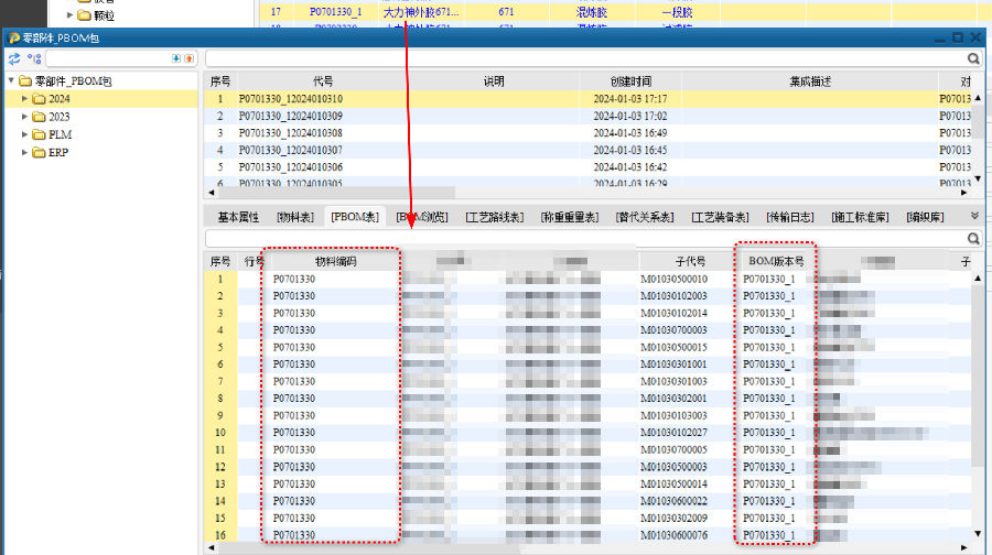 ERP中传输的液压胶管物料,会在PBOM包处,ERP文件夹下。可以手动同步,也可以自动同步。手动同步的,会写到工作区,无误后再归档,自动同步,会直接插到零部件表中。