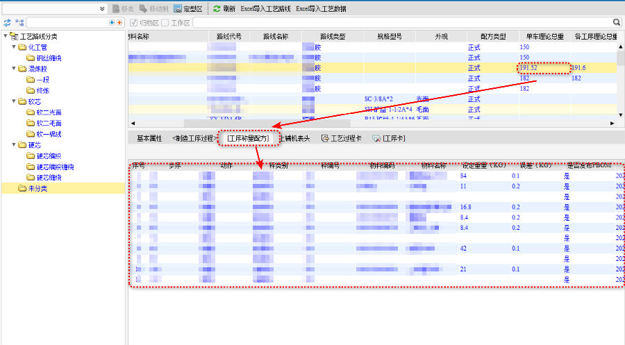 PLM与上辅机集成:上辅机是负责管理混炼胶的生产,在PLM中新建混炼胶的工艺和称重,传输到上辅机数据库。