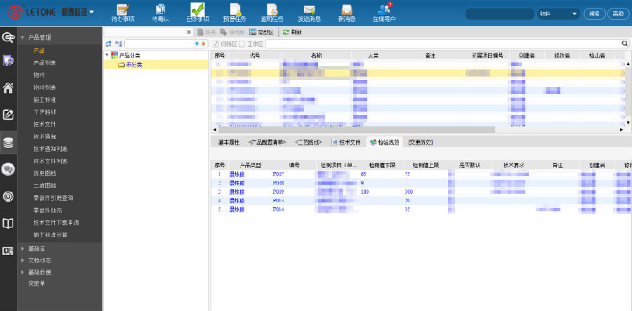建立利通检验数据的管理:使用SIPM/PLM系统,定义检测方法库,技术部在产品上定义检测标准,通过产品配置清单,将需要检测的物料关联到具体的产品上,检测中心按照对应的检测标准,做检测,录入检验结果,系统根据定义好的检测标准范围录入的检测结果,实现对检测数据结果是否合格的判断。