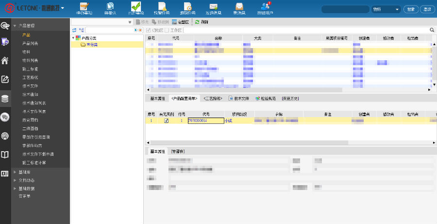 产品管理:产品并无特别含义,主要作为定义检验规范使用。根据产品上大类,从检验规范库中,选择对应的检验规范,放到产品的检验规范页签下。物料通过产品配置清单,关联到对应的产品,产品配置清单分小、中、大、试几个阶段,物料通过配置清单关联的产品,即物料使用所关联的产品下的检验规范。