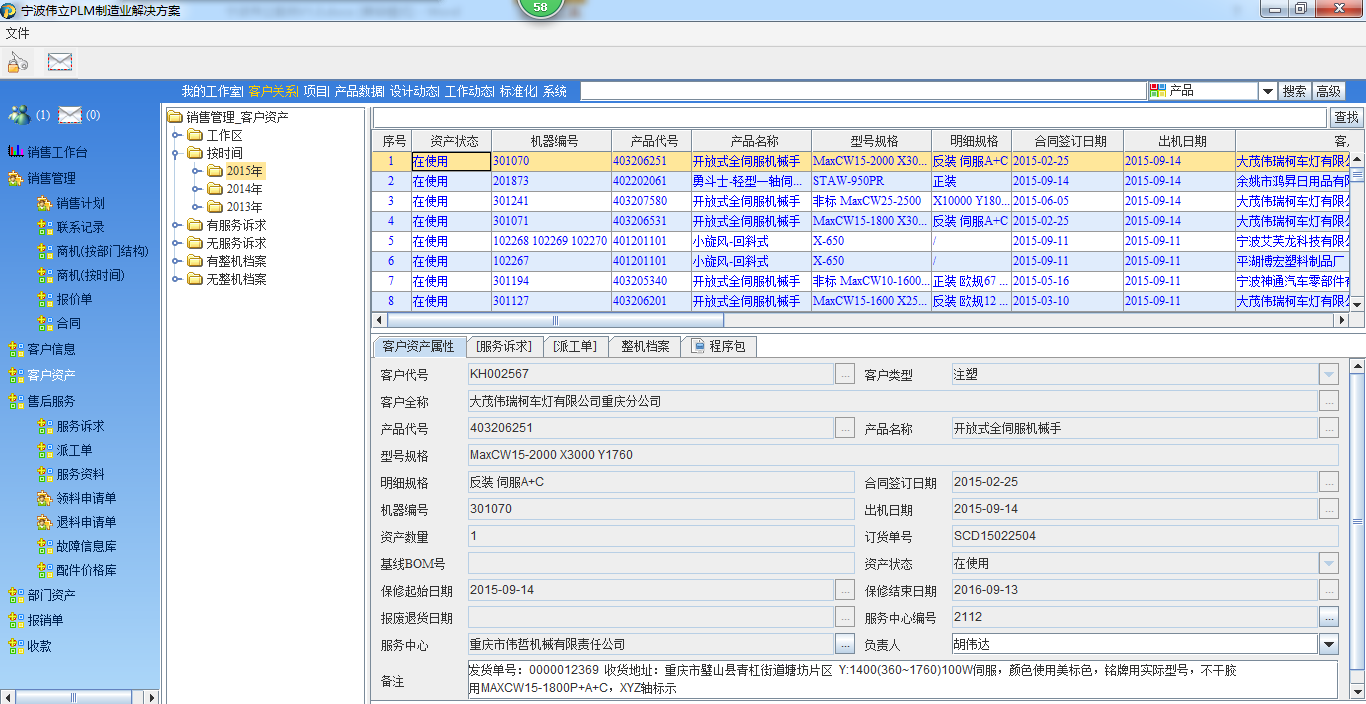 售前售后的技术服务采用SIPMPLM的客户关系管理模块管理,有效的支撑公司及各办事处的售前活动管理,理顺售后服务。