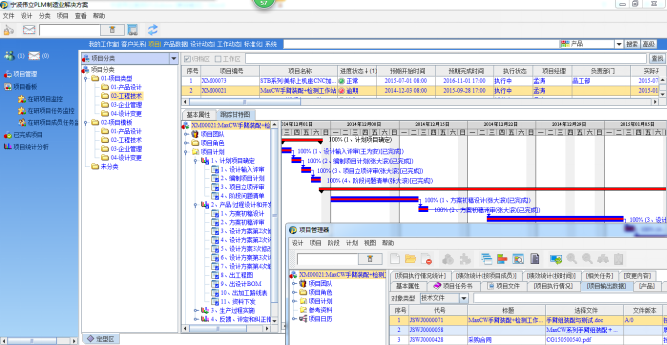 研发管理在PLM系统中采用项目计划与产品数据分类相结合的方式进行管理。通过PLM系统的项目管理进行计划任务的分配和进度的跟进。