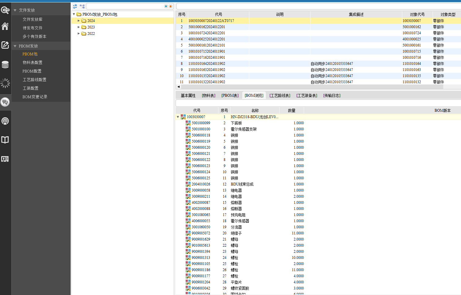 实现了ERP所需的制造BOM、订单BOM、工艺路线、工时管理和组件分配设计和自动生成需求;实现了工厂根据实际情况,需要分部件、分批次进行产品设计和生产的需求;支持多版本工艺路线维护和传递。