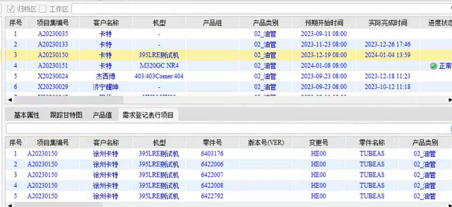 在项目管理中根据与需求的关系也可以查看到此项目需要完成的零件号清单。