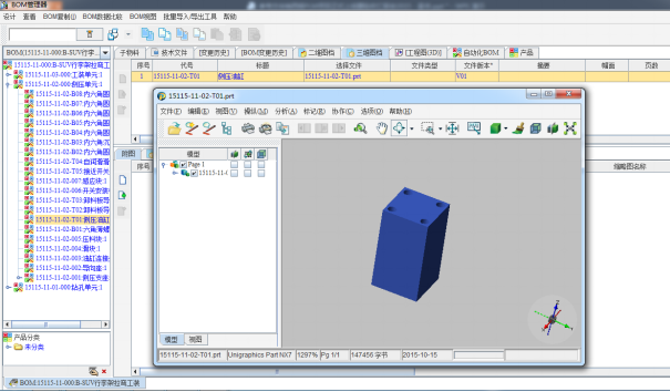 ● 保存整套的产品图纸进入SIPM/PLM中时直接提取生成树状产品BOM,并保证图纸修改后,对应零部件的信息自动同步更新。
