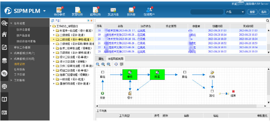 在实施SIPM/PLM系统后,流程通过系统固化并与对应的审核数据绑定,工程师只负责维护文件的正确即可确保流程的应用正确;流程执行过程中可实时查询并监控,流程的执行记录为管理改善提供数据源;为以后无纸化办公,通过流程下发PDF签名文件做好准备。