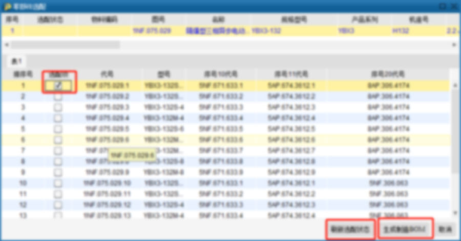 实施后:选中产品进行产品配置;不需要每个零件进行选配,选择总成产品刷新后,系统根据配置表关系自动进行其他零部件的勾选;勾选完成后系统自动生成制造BOM,并记录勾选结果,方便未来的追溯;不但生成结果,而且保留痕迹(选配过程选择的参数)。