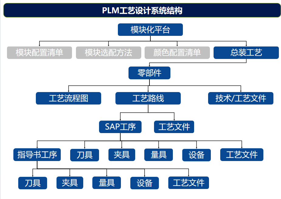 1、PLM系统提供平台产品的总装多工艺路线,下关联SAP工序、材料、组件、工艺文件等工艺对象。