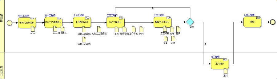 5、设计完成后,工艺按任务分配进行工艺模块设计。最后评审归档后,生成模块化设计产品。