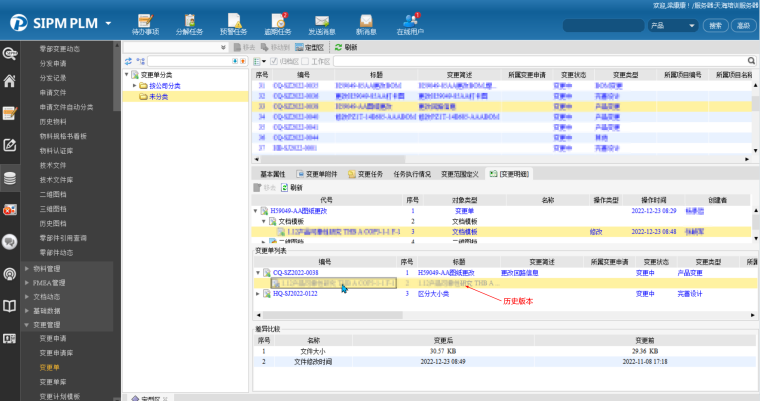 经过对变更流程的固化处理,项目管理相关的所有变更均已实现可追溯、可核查,确保每一项变更均有明确记录与依据。同时,对于文件类的变更,亦能够追溯至其历史版本,以便进行全面审查与对比。