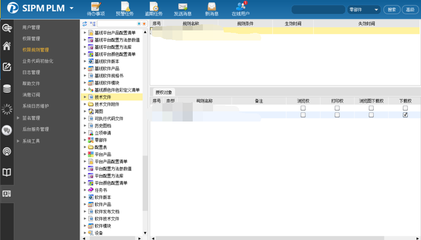 l 制备完善的规则权限体系,按照角色赋权,数据进行权限的控制,支持由流程暂时赋予权限,支持设定权限生效时间;