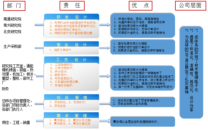由于南通科技属于特大型企业,部门众多,人员众多,业务牵涉面广,思普服务团队与南通科技在实施中建立了清晰的各部门责权利,从而高效的完成了PLM系统实施。