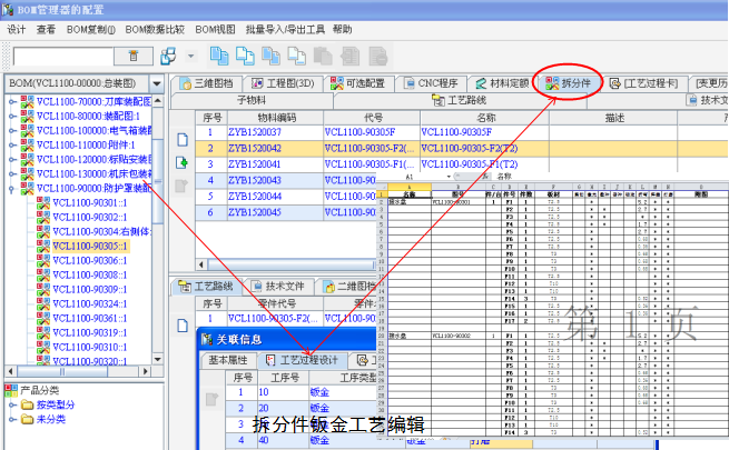 除了研发部门、工艺部门的设计管理外,南通科技的各子公司和车间还会为了加工之需进行部分零部件的拆分设计,比如设计部门设计的水箱,在加工时是需要由各块子件焊接而成的,则必须按图进行拆分设计,PLM系统针对性的实现了拆分件管理,并能对拆分件进一步做工艺设计,最后能够快速精准的进行拆分数据报表统计: