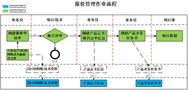 4、项目定点前的需求阶段继续在ERP系统中进行管理,待项目定点后,将报价阶段的所有资料传递到PLM系统,然后在PLM系统中进行项目整个过程管控。