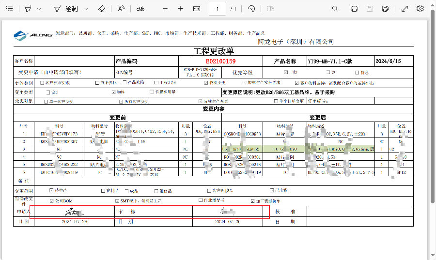 通过PLM系统,阿龙电子实现了变更流程的可视化和自动化管理。所有变更数据和ECR流程统一纳入系统进行审批,变更设计、校对、归档、检入等环节实现系统化管理。