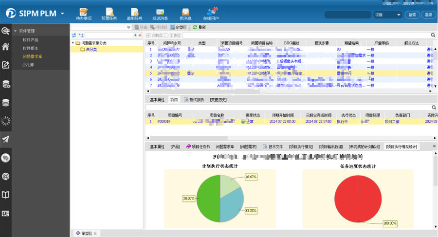 2. 问题、BUG、需求的系统化管理:在PLM系统中单独创建问题需求对象,所有问题、BUG、需求均与项目和软件版本建立关联,便于集中管理和跟踪。管理流程通过PLM系统执行,问题提出后创建需求表单,指派执行人处理并测试反馈,问题解决后流程关闭。