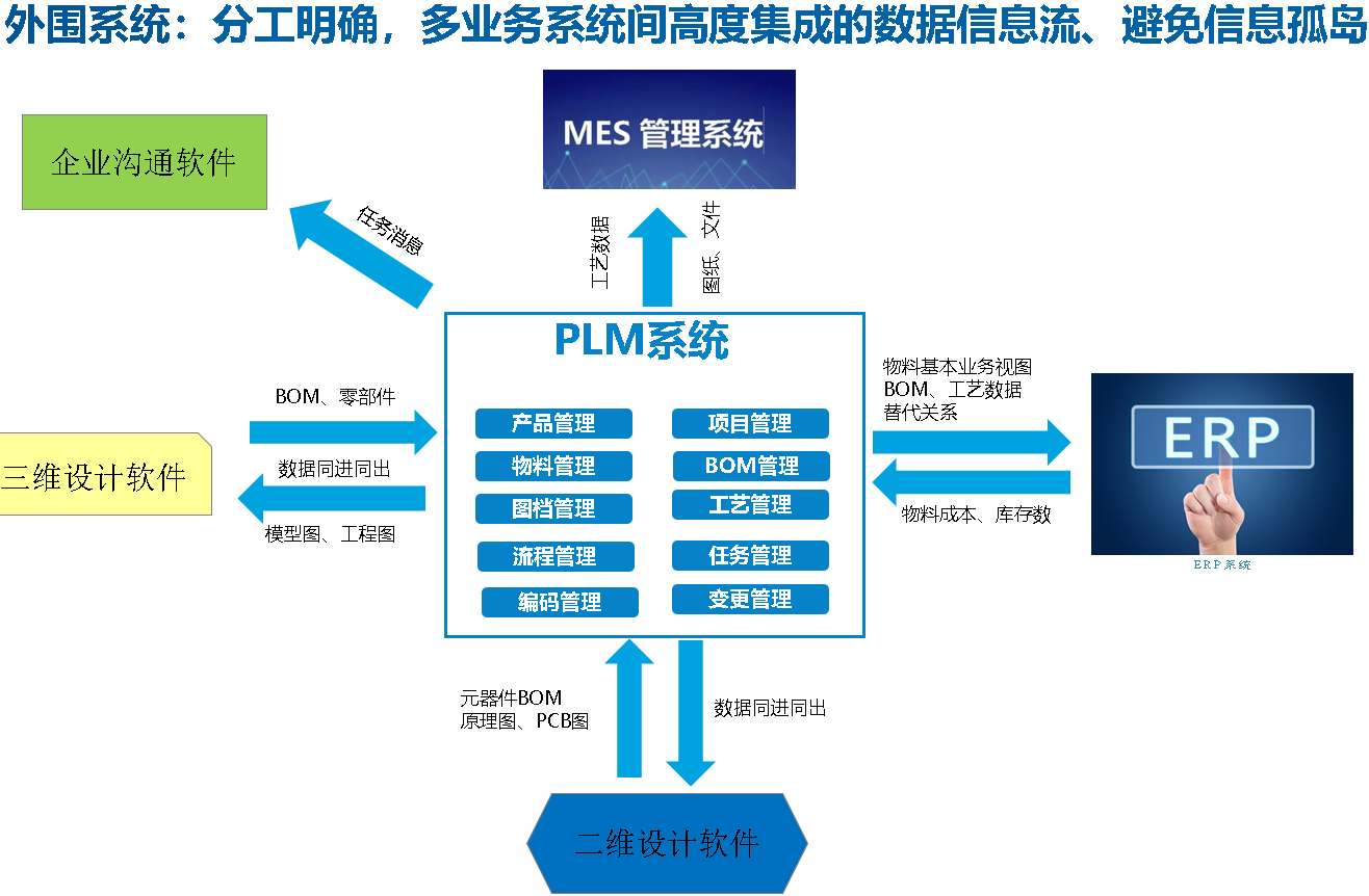 7. 系统集成与协同管理:打通PLM系统与ERP、MES、钉钉等系统之间的数据壁垒,实现数据集成,贯通产品开发至信息化数据流,提升企业各部门之间的业务协同水平,推动公司整体竞争力的提升。