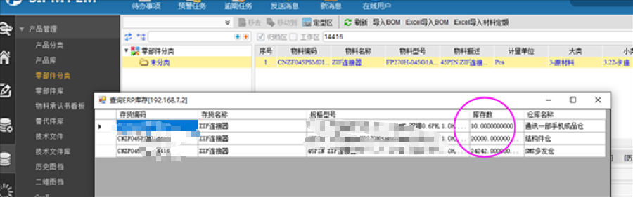 在PLM中管理的物料、BOM和工艺路线将全量传输给ERP系统,ERP中仅管理扩展信息,确保数据的一致性。零部件库存查询将采用实时查询方案,允许在PLM系统中多选物料进行库存查询。