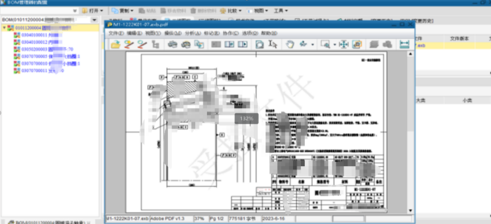 根据三维软件中设计的图纸,通过PLM系统三维接口提取后,将模型上传到系统,经过系统流程签审后,会生成签字版PDF工程图图纸文件。