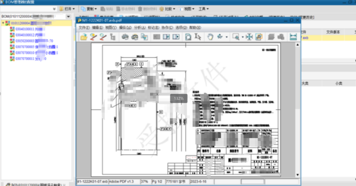 根据CAD中设计的图纸,通过PLM系统CAD接口提取后,将二维图纸上传到系统,经过系统流程签审后,会生成签字版PDF图纸文件。
