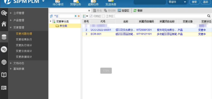 变更流程化、任务化管理,使变更能够有效追踪及可控。并且通过SIPM/PLM的强大查询工具,对公司的所有变更设计进行实时监控,对公司所有产品的变更履历进行记录。