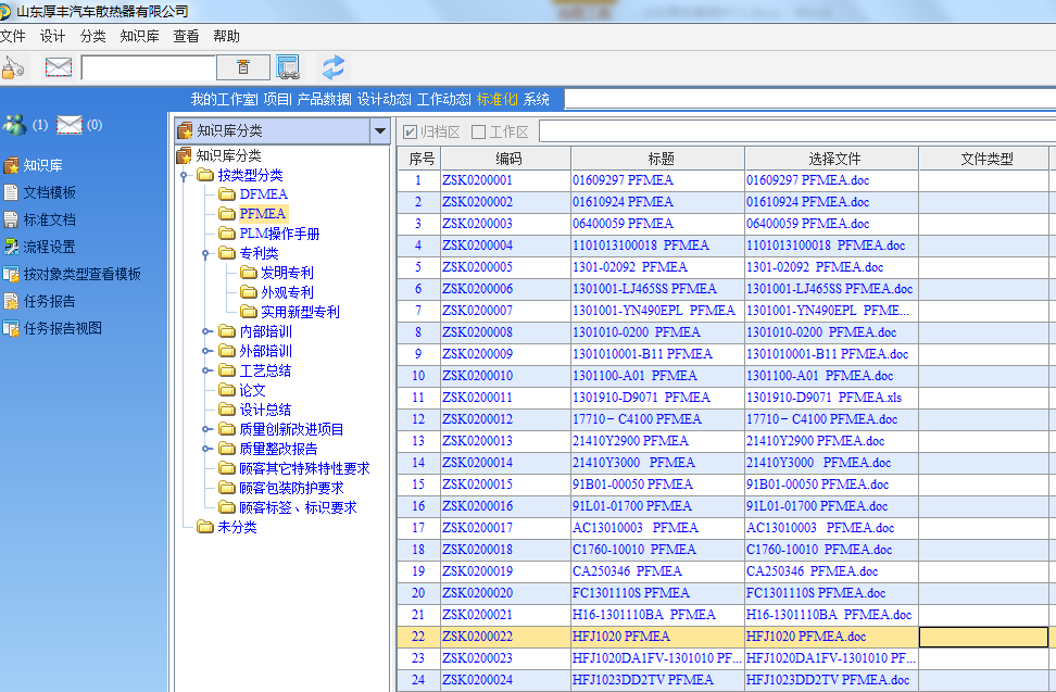 之前数据分散在每个工程师的电脑上面,这有很大的风险。而现在不必担心由于员工流动而导致数据丢失。通过集中管理安全性,而且可以保证正确的人在正确的时间得到正确的数据。SIPM/PLM中的搜索主要分为分类查询,模糊搜索,高级搜索三大类。通过不同的条件组合,设计人员可以很快查询到自己想要的数据,从而大大提高了设计人员工作效率。利用SIPM/PLM强大的知识库管理功能,建立山东厚丰企业级的知识库,实现企业的知识积累,并实时共享,高效的进行知识的传承。