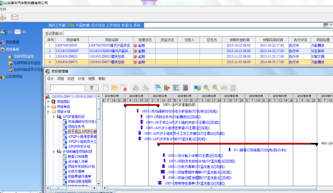思普PLM实施团队帮助山东厚丰重新梳理了企业项目管理的特点,实现了APQP研发流程的固化,有力的保证了产品开发按TS16949质量要求进行控制。公司领导层通过SIPMPLM系统全面直观地看到项目的进展情况,系统提供多种分析方法,即时了解任务的进度、工作输出完成情况。