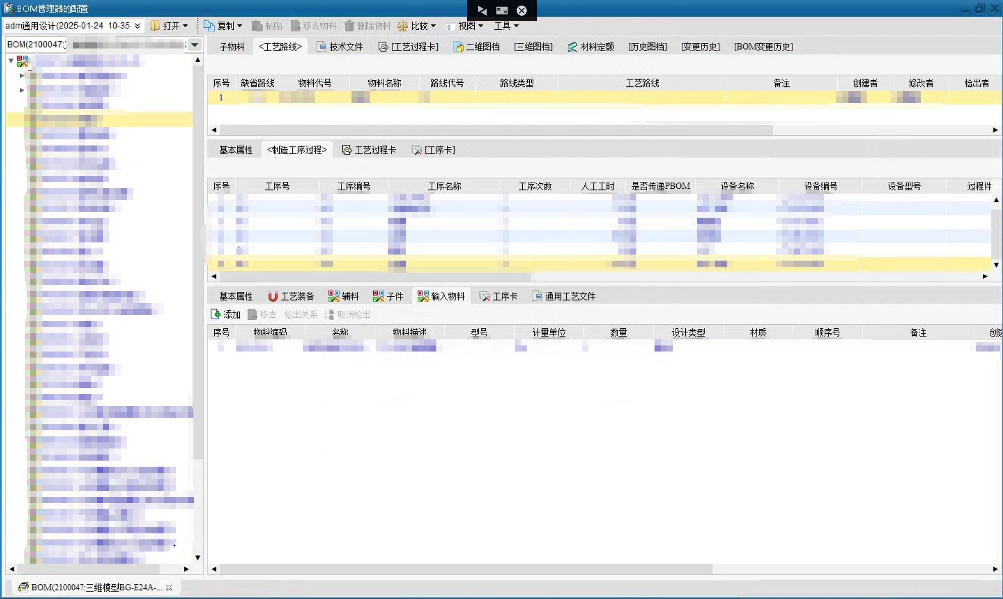 以工艺结构化设计,通过工艺路线、材料定额、输入物料,形成最终的工艺结构BOM。