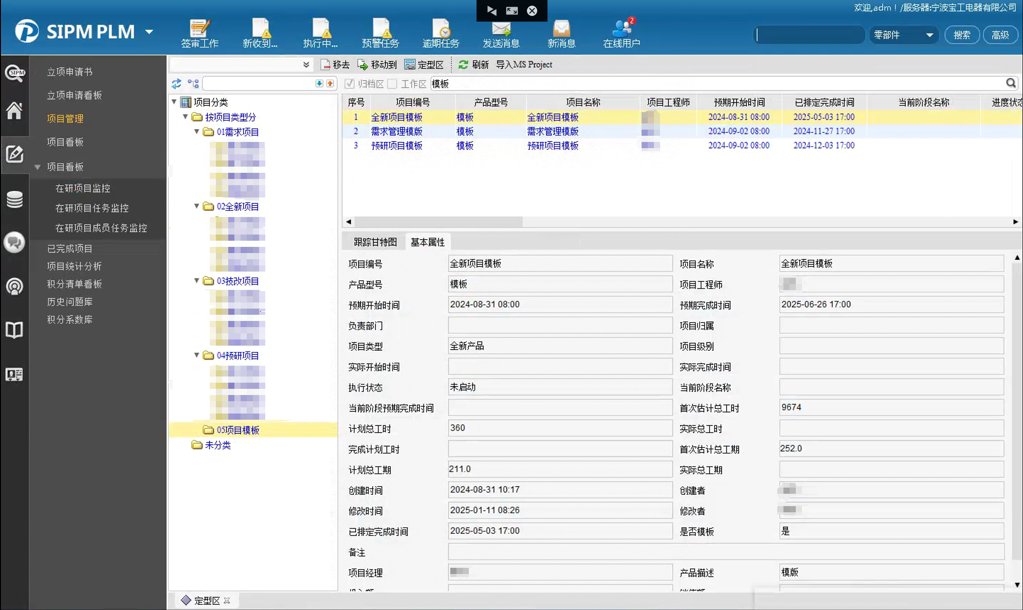 利用SIPM/PLM系统强大的项目管理及流程管理功能,将宝工研发流程在PLM系统中进行固化,形成宝工特有的项目模板。