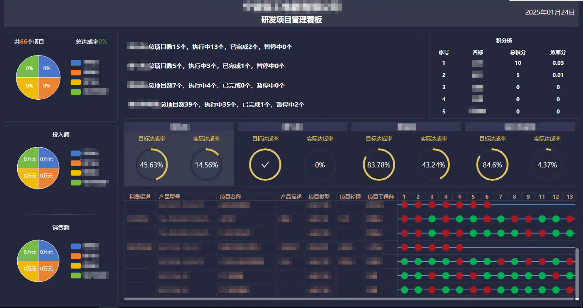 基于宝工实际业务需求,创建项目大屏看板,可通过大屏看板,统筹获取全公司项目执行情况。