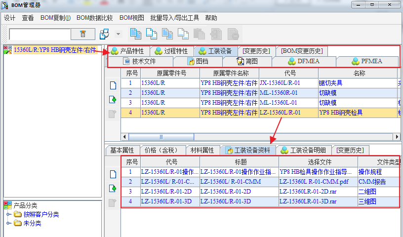 1) 重新构建了产品数据的组织模型,确立了以BOM为核心的数据组织方式,产品所有开发过程中的文档、模具(涵盖了模具的信息管理以及模具图纸的管理)等资料,都围绕BOM展开;