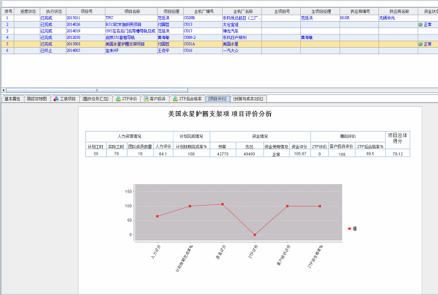 1) 为了更好的对项目进行管理,引入了项目评价机制,从项目的人力资源使用情况、项目计划的按时完成率、项目资金的使用情况以及横向部门的评价等四个方面共计12个指标对项目的执行情况进行综合评价,从而客观的得出项目的执行质量;