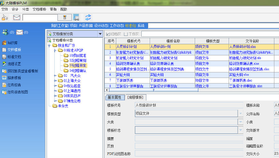 1) 在实施过程中,根据主要客户所对管理体系的要求并结合无锡铸华本身对产品开发的要求,对产品的开发过程进行了全面梳理,最终形成了大众、日产、神龙、起亚、通用、标准APQP以及模具开发过程共计10个不同类型的开发过程,并以项目模板的形式固化到了PLM系统中;