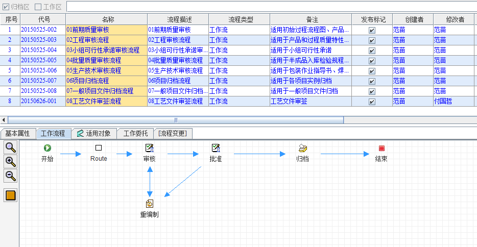 2)对各类文档的签审过程进行了重新定义,并在系统中进行了固化,保证了文件的有效性;