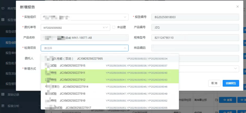 按检测项目维度出报告:单一委托单中存在多个检测项目支持按照每一个检测项目出具报告,且允许重复出报告,但所有报告编码保证唯一性。