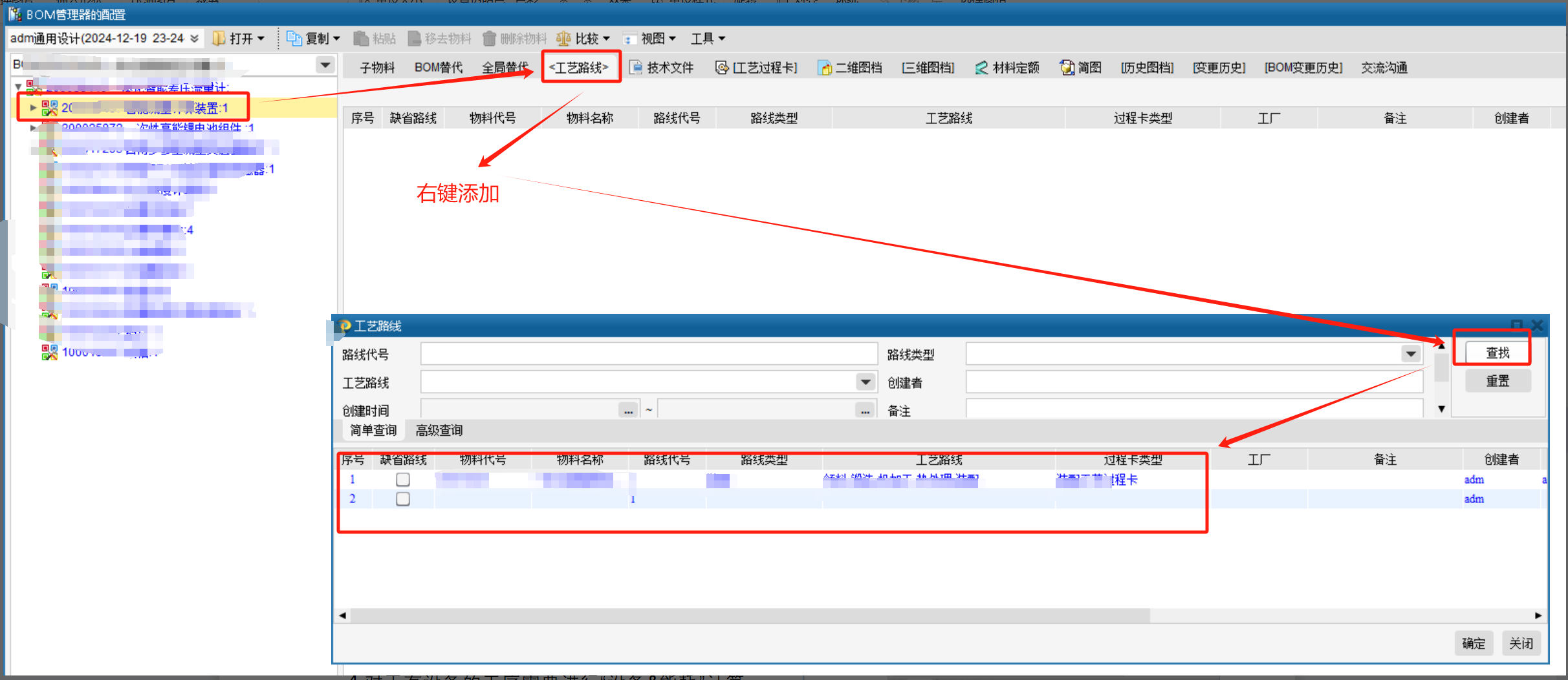 5.通用工艺路线多次使用,当新产品引用系列产品工艺路线时,可通过添加系列产品工艺路线的方式快速添加工艺路线数据。