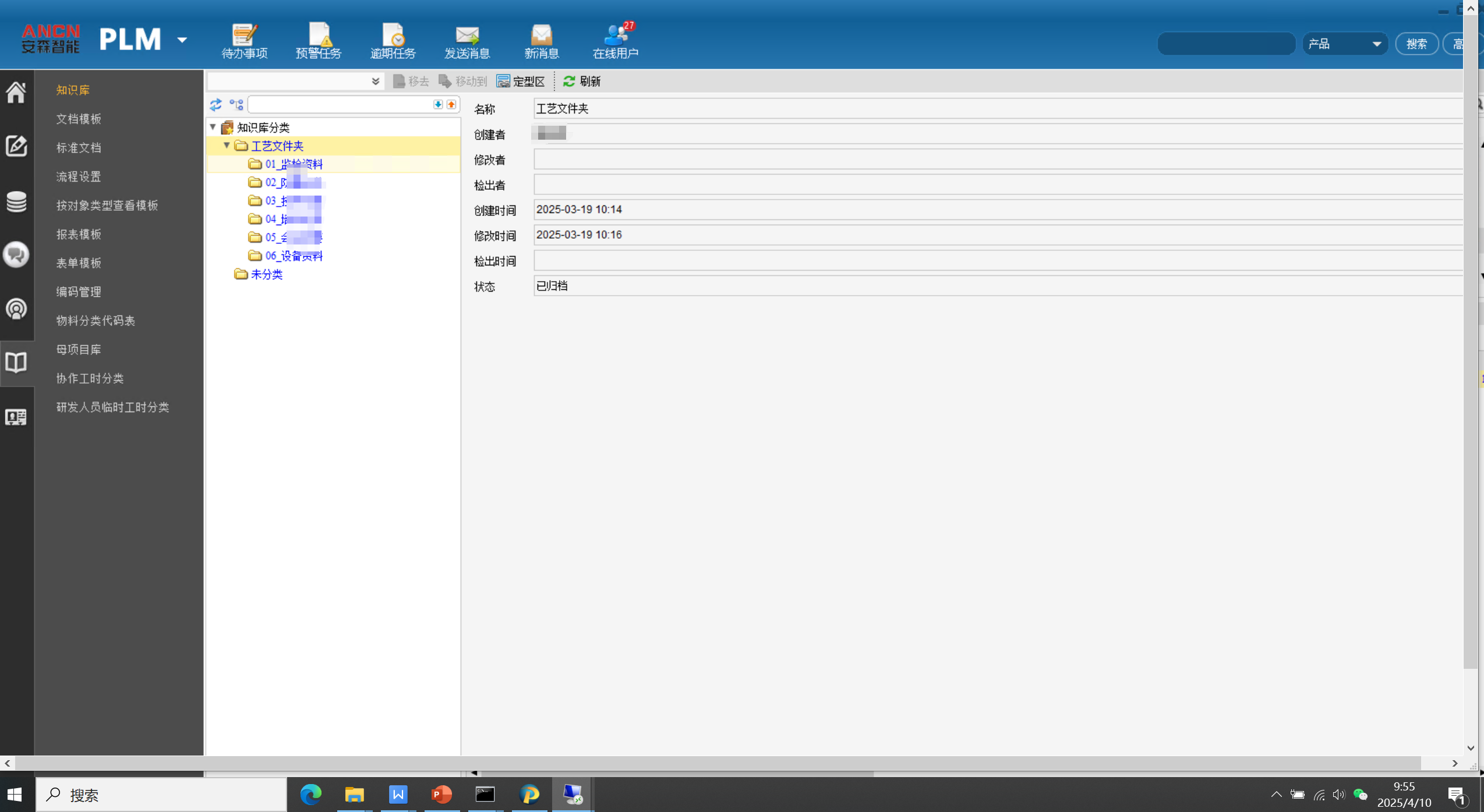 6) 知识管理:建立产品生命周期知识管理规范,利用知识库模块构建产品研发支撑库(经验教训、技术文献、专利等)、标准文档模块构建产品研发标准库(国家标准、企业标准等)。通过实施引导使用管理手段加快知识资产的显性化。